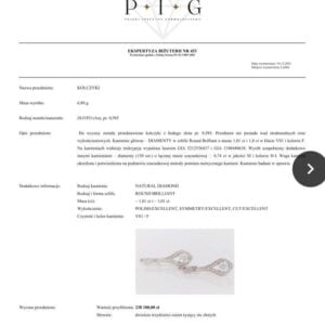 Kolczyki z diamentem 1.0 ct i 1.01 ct, złoto pr 0,585