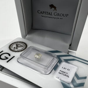Natural Diamond, Carat 1,01 ct, Shape: Square Cushion Modified Brilliant, Color: Natural Fancy Light Yellow, Clarity VS1 – Blister