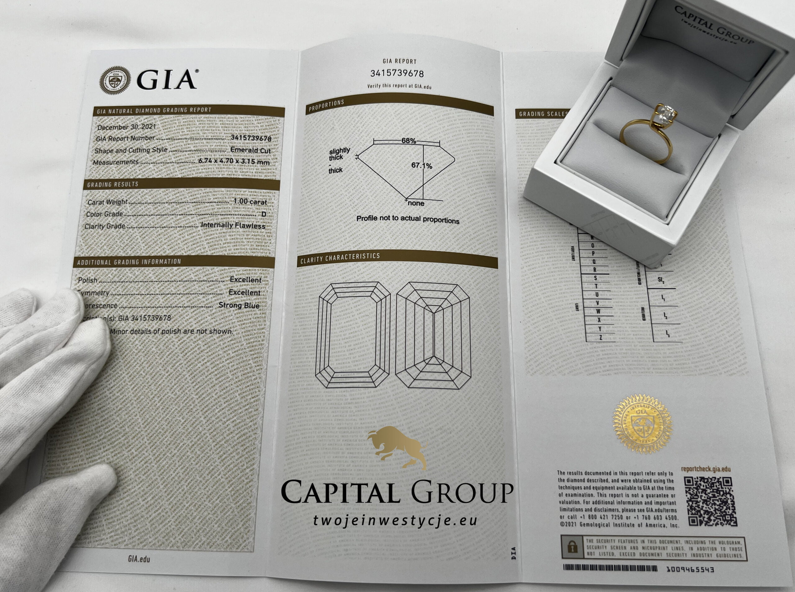 Diamond, Emerald Cut, 1 carat, D, IF – Internally Flawless, Excellent