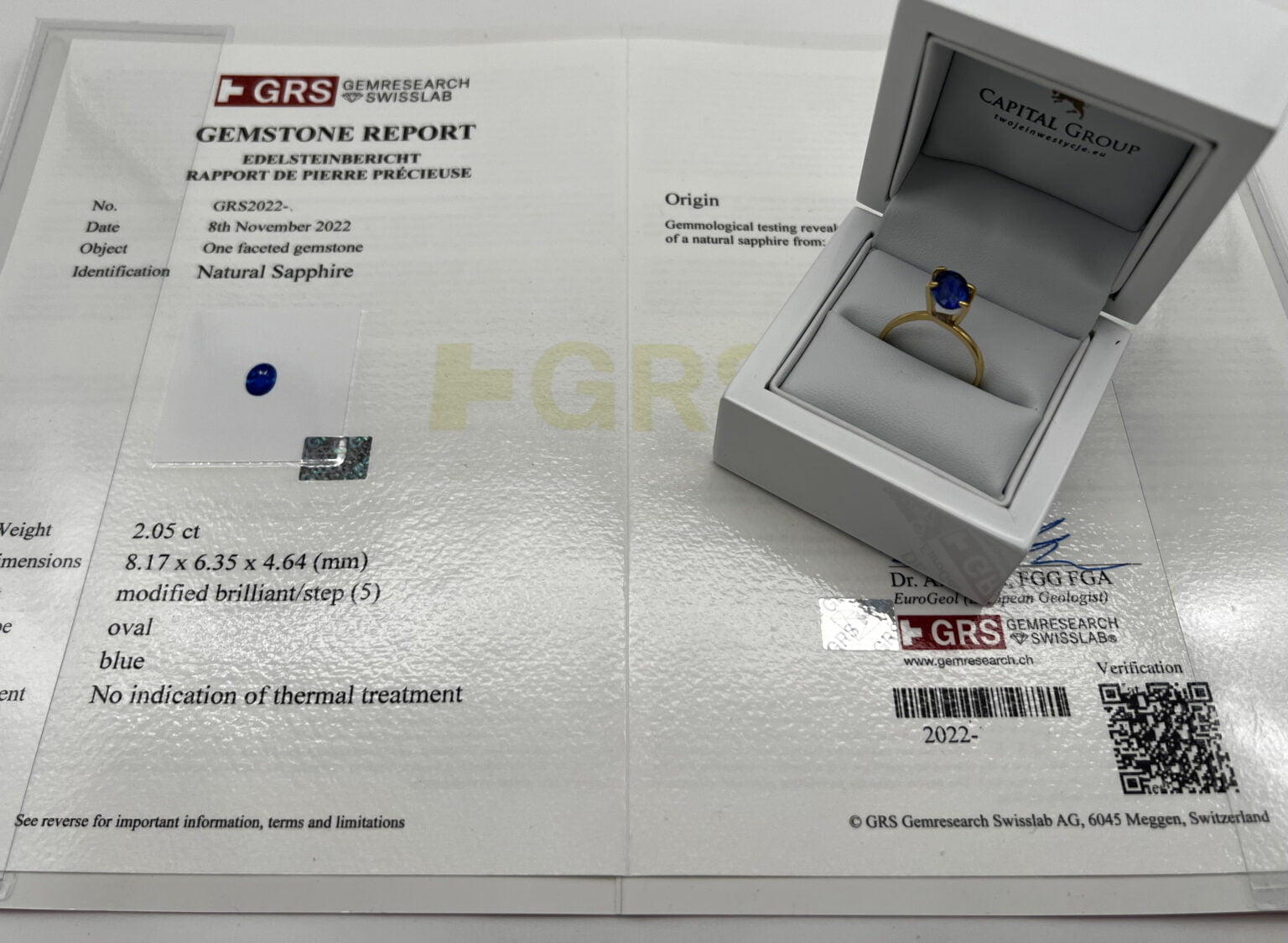 Natural Sapphire, 2,05 ct, Oval, Blue, Brilliant