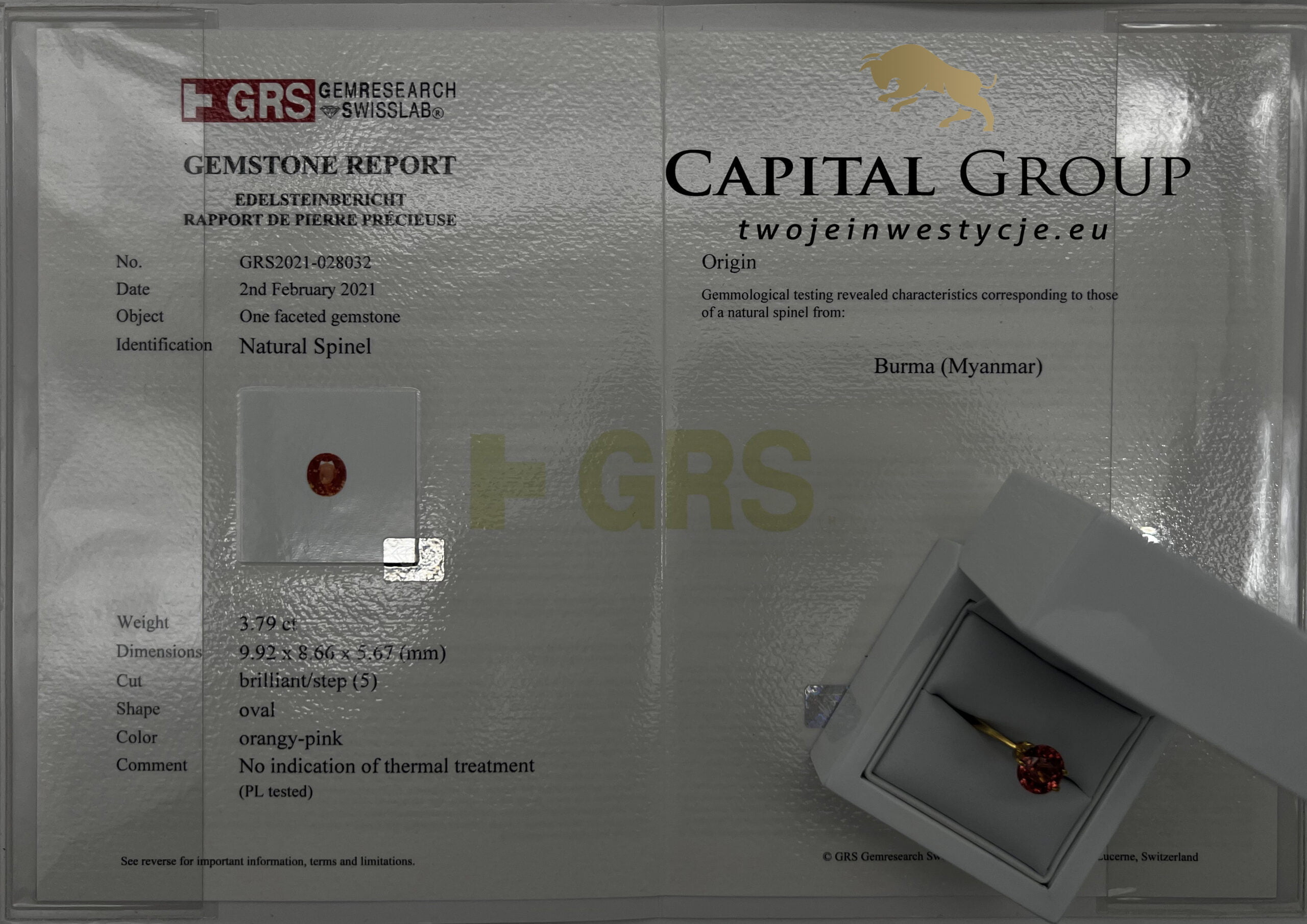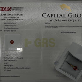 Natural Spinel, 3,79 ct, Oval, Orangy-pink, Burma
